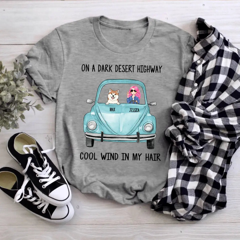 Beetle Volkswagen, Dogs Shirt Personalized Breeds And Styles On A Dark Desert Highway Cool Wind In My Hair