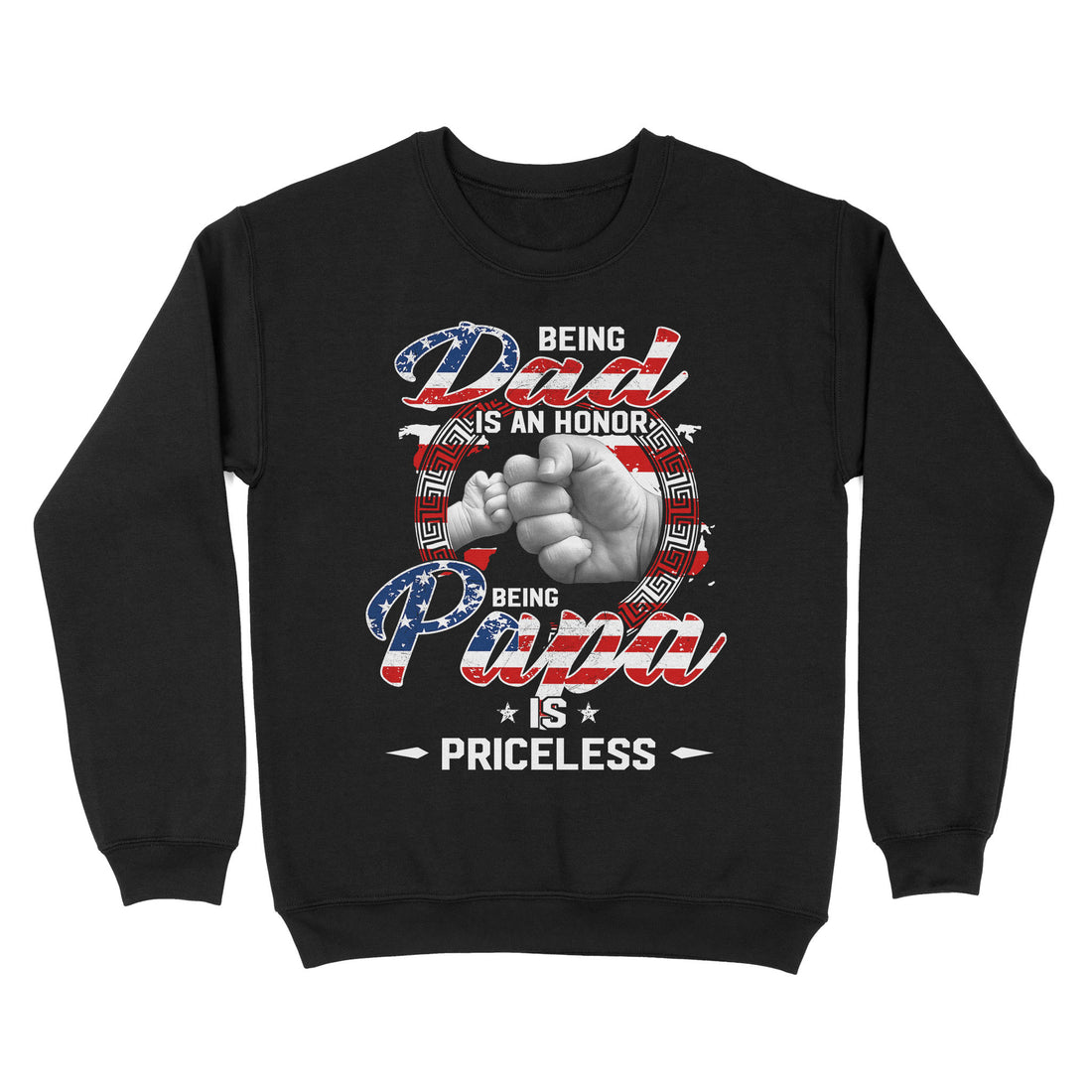 Being Dad Is An Honor Being Papa Is Priceless Flag Funny Father's Day T-Shirt - Standard Crew Neck Sweatshirt