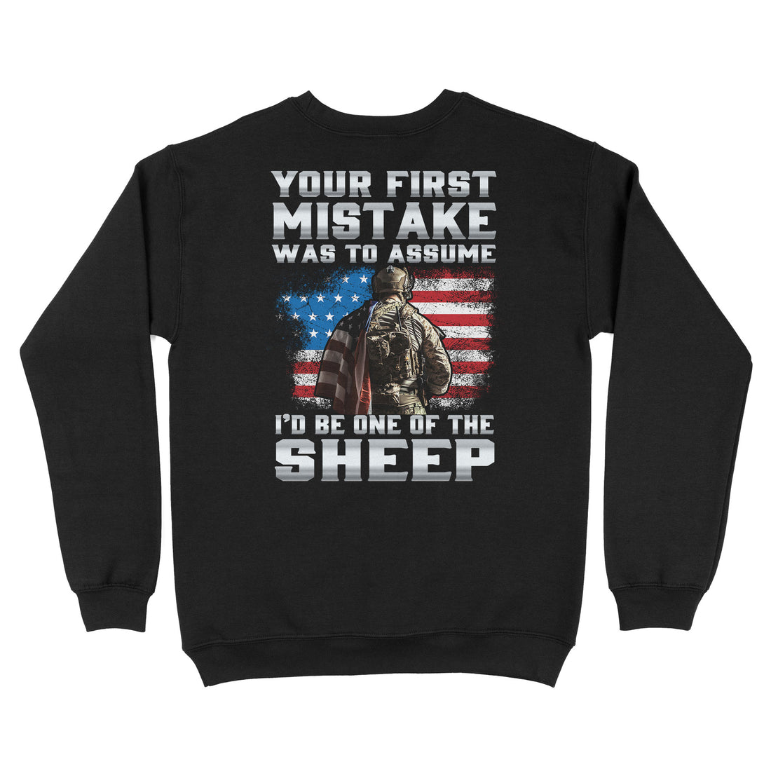 Your First Mistake Was To Assume I'd Be One Of The Sheep Veteran Shirt Print On Back - Standard Crew Neck Sweatshirt