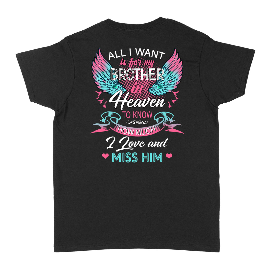 All I Want Is For My Brother In Heaven To Know How Much I Love And Miss Him Print On Back T-Shirt - Standard T-Shirt