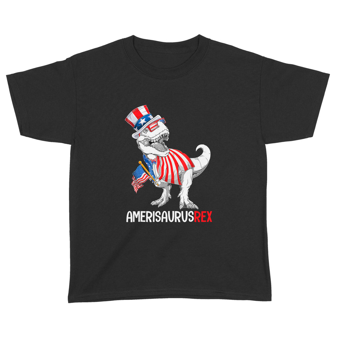 American Flag 4th Of July T Rex Dinosaur Amerisaurus Rex Boy T shirt - Standard Youth T-shirt