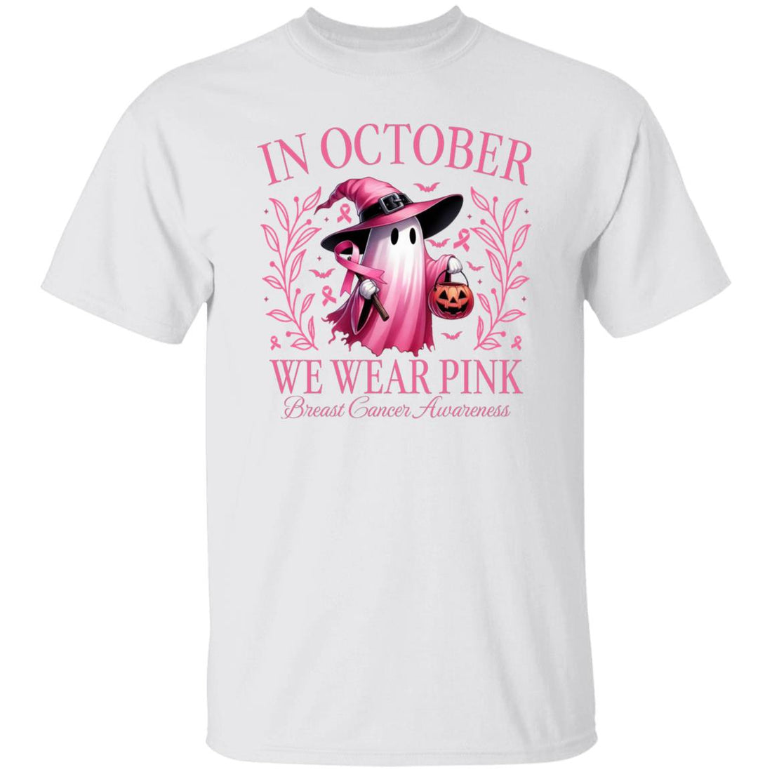 In October We Wear Pink Ghost Halloween Breast Cancer Awareness Shirt - Halloween Pink Boo Shirts