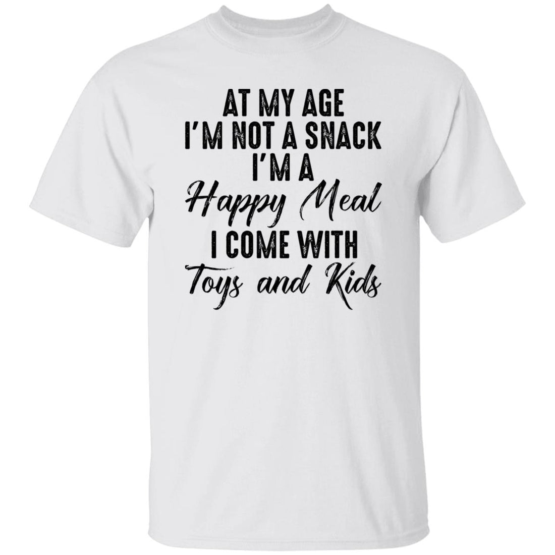 At My Age I'm Not A Snack I'm A Happy Meal I Come With Toys And Kids Funny Quote Shirt