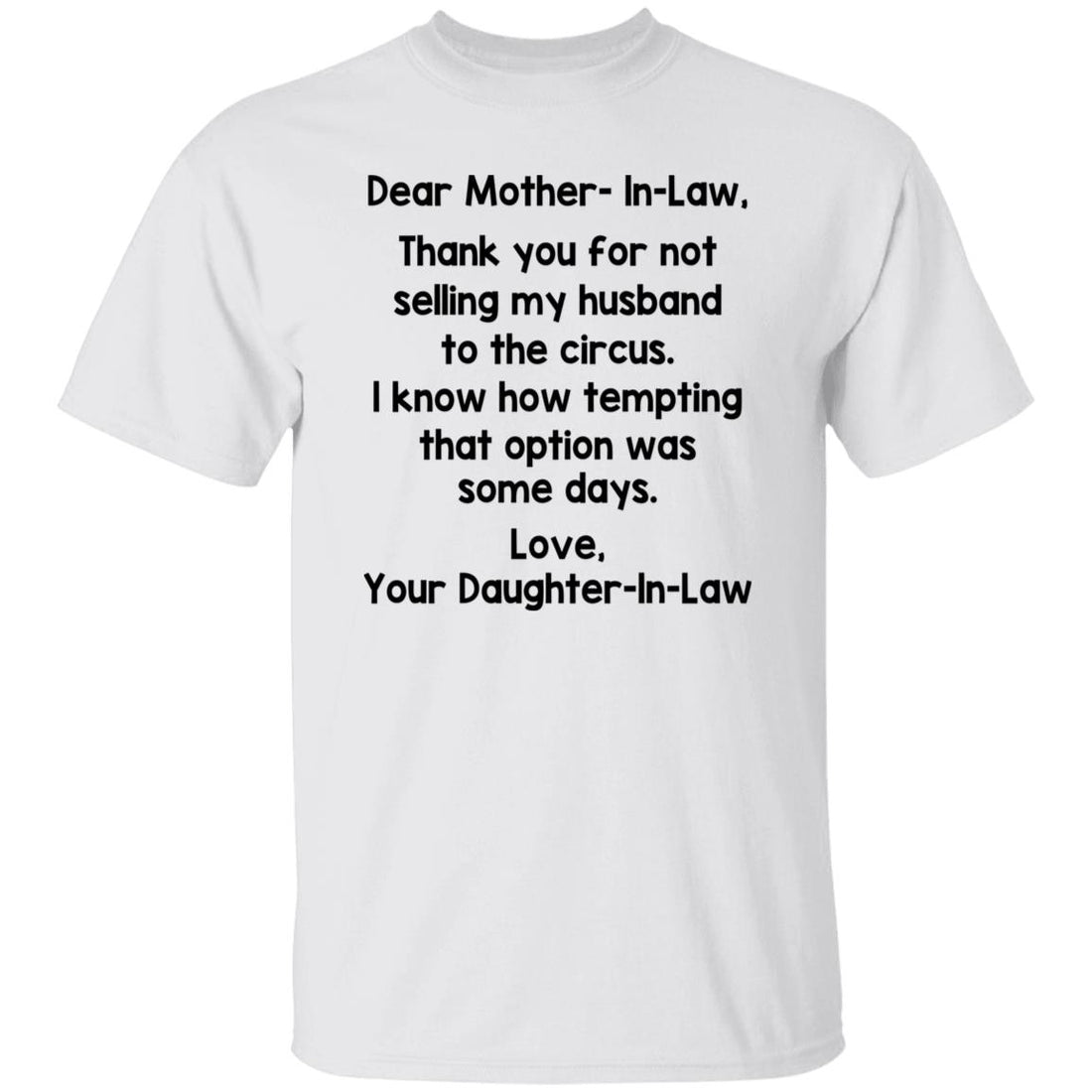 Dear Mother-In-Law Thank You For Not Selling My Husband To The Circus Love You Daughter-In-Law Shirt