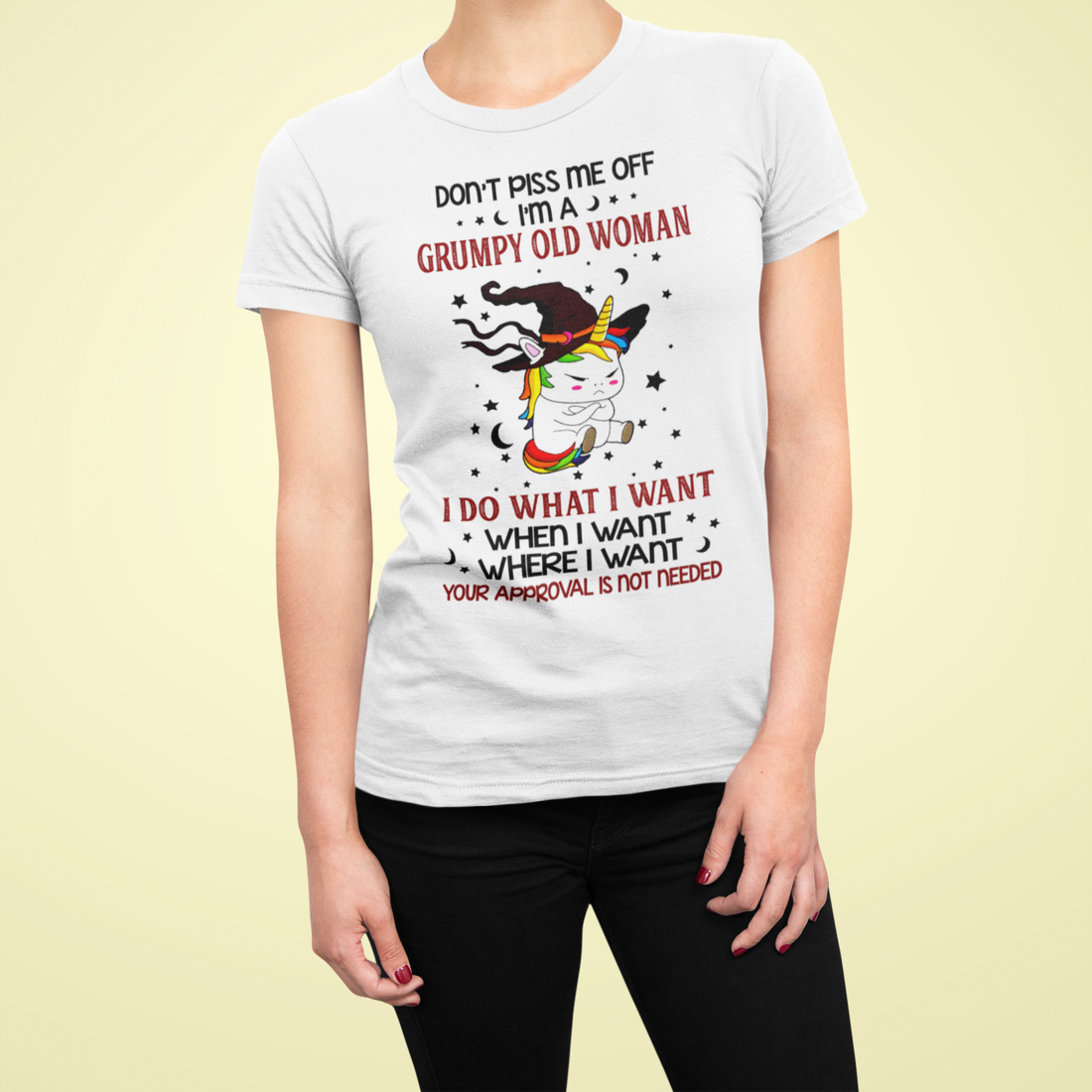 Unicorn Witch Don't Piss Me Off I'm A Grumpy Old Woman I Do What I Want When I Want Where I Want Funny Shirt - Standard T-Shirt