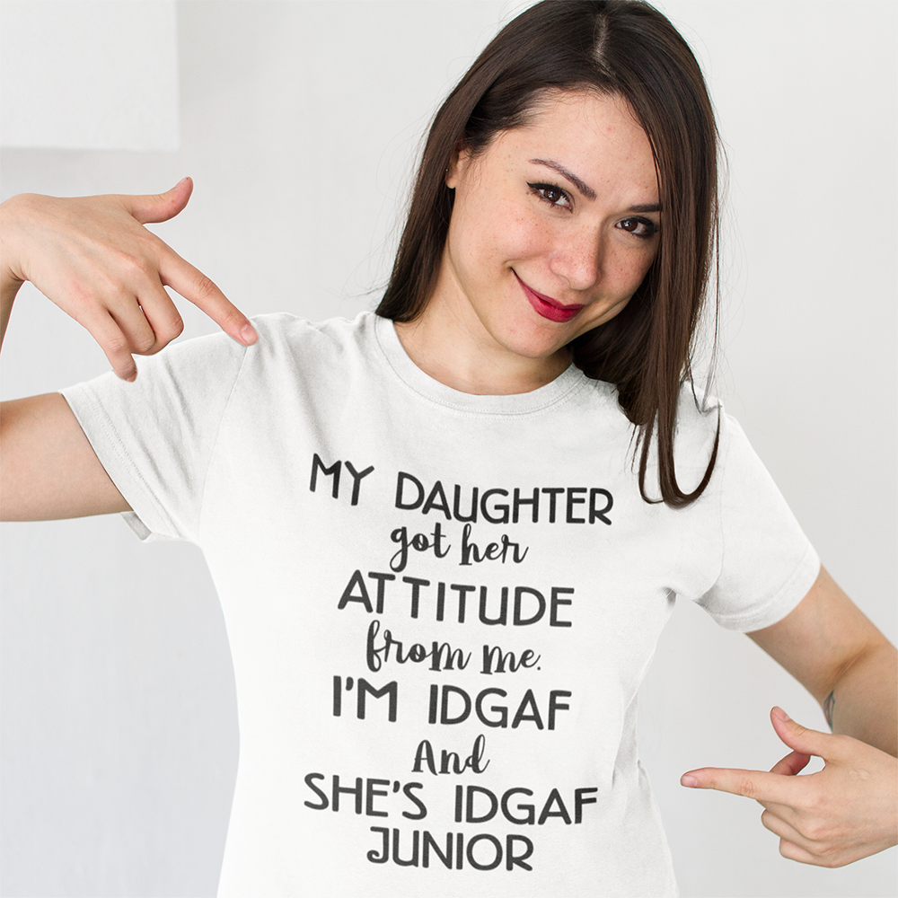 My Daughter Got Her Attitude From Me I'm Idgaf And She's Idgaf Junior Shirt Funny Quote T-Shirt - Standard T-Shirt
