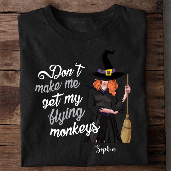 Personalized Don't Make Me Get My Flying Monkeys Funny Witch Halloween Shirt
