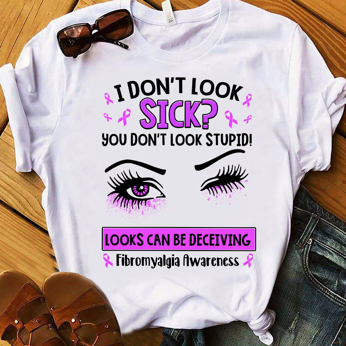 Eyes I Don't Look Sick You Don't Look Stupid Looks Can Be Deceiving Fibromyalgia Awareness Shirt - Standard T-Shirt
