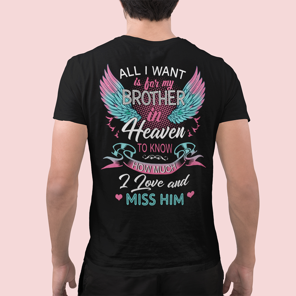 All I Want Is For My Brother In Heaven To Know How Much I Love And Miss Him Print On Back T-Shirt - Standard T-Shirt
