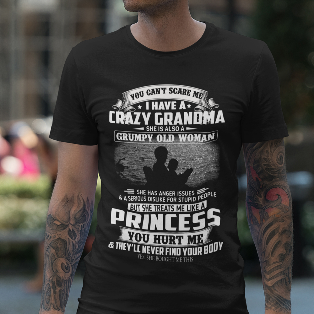 You Can’t Scare Me I Have A Crazy Grandma She Is Also A Grumpy Old Woman Funny Granddaughter T-Shirt – Standard T-Shirt