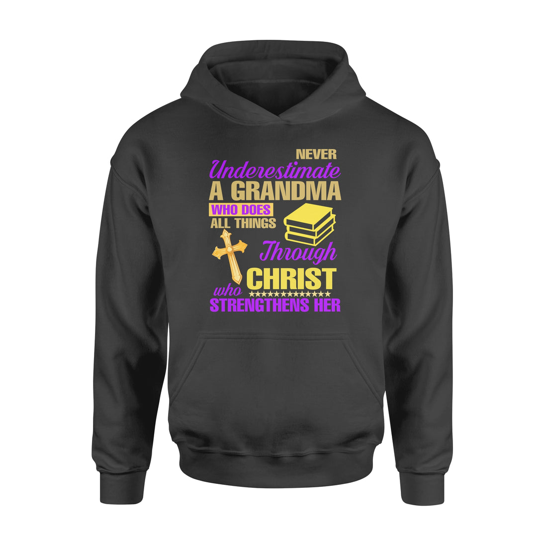 Never Underestimate A Grandma Who Does All Things Through Christ Who Strengthens Her Shirt - Standard Hoodie