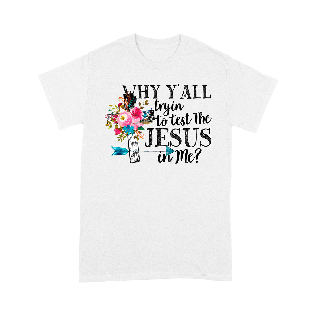 Why Y’all Tryin To Test The Jesus In Me Graphic Tees Shirt - Standard T-shirt
