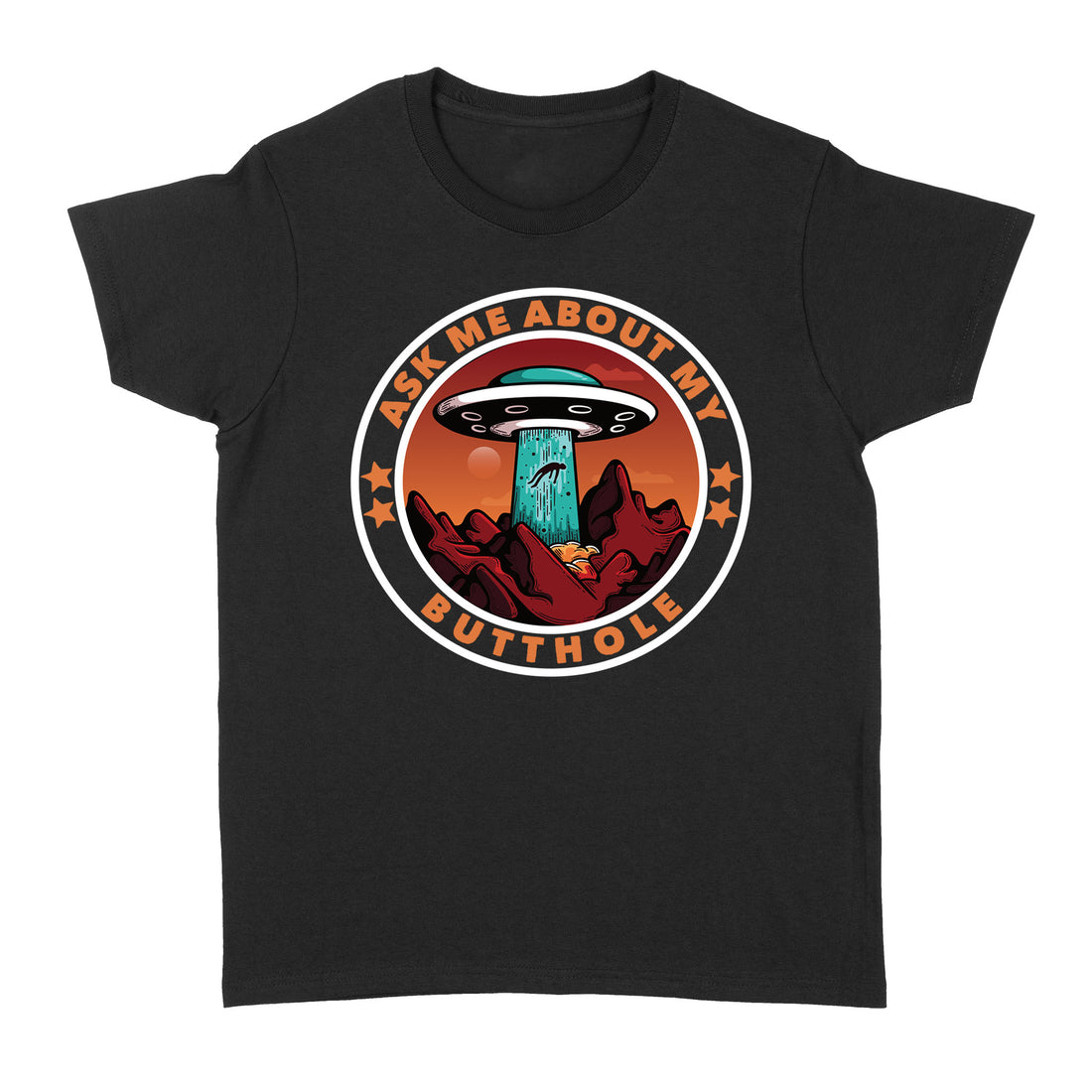 Ask Me About My Butthole Funny UFO Alien Abduction Gift T-Shirt - Standard Women's T-shirt