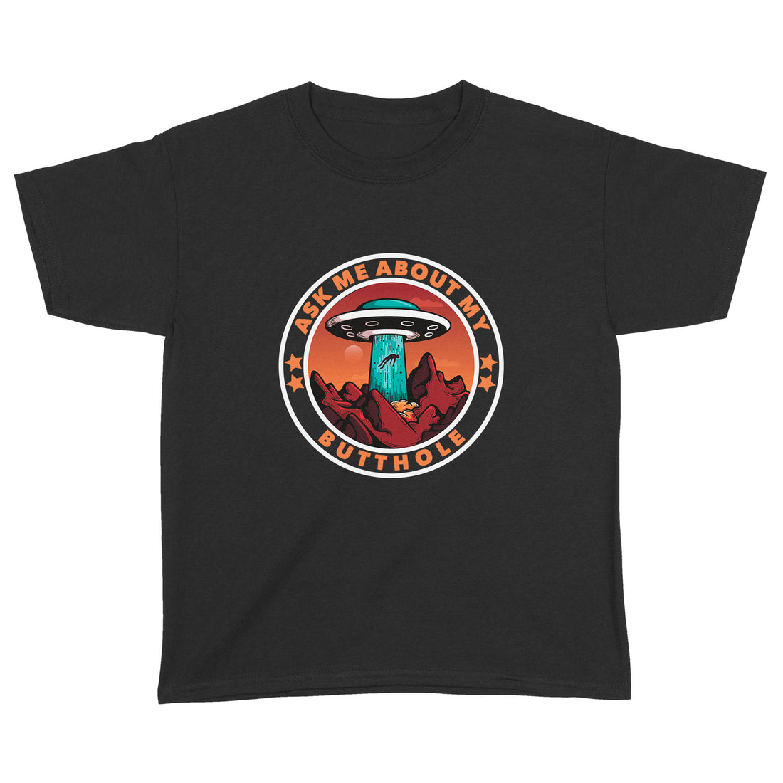 Ask Me About My Butthole Funny UFO Alien Abduction Gift T-Shirt - Standard Youth T-shirt