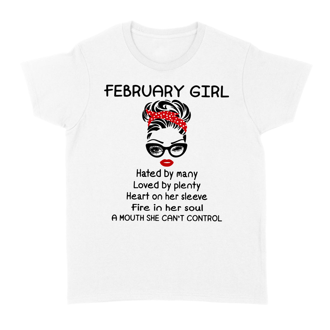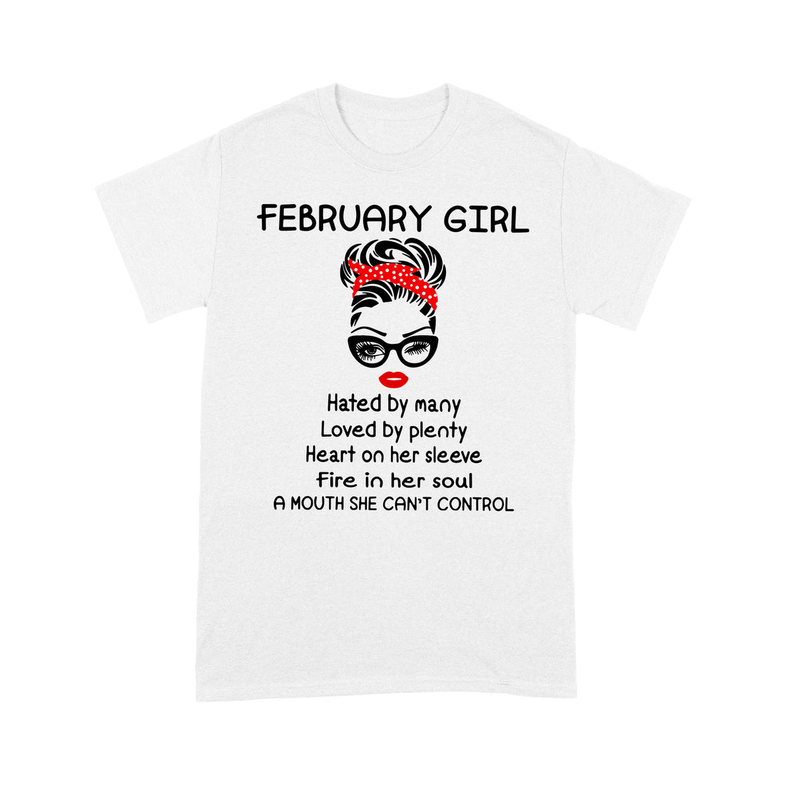 February Girl Hated By Many Loved By Plenty Heart On Her Sleeve Fire In Her Soul A Mouth She Can’t Control shirt - Standard T-shirt