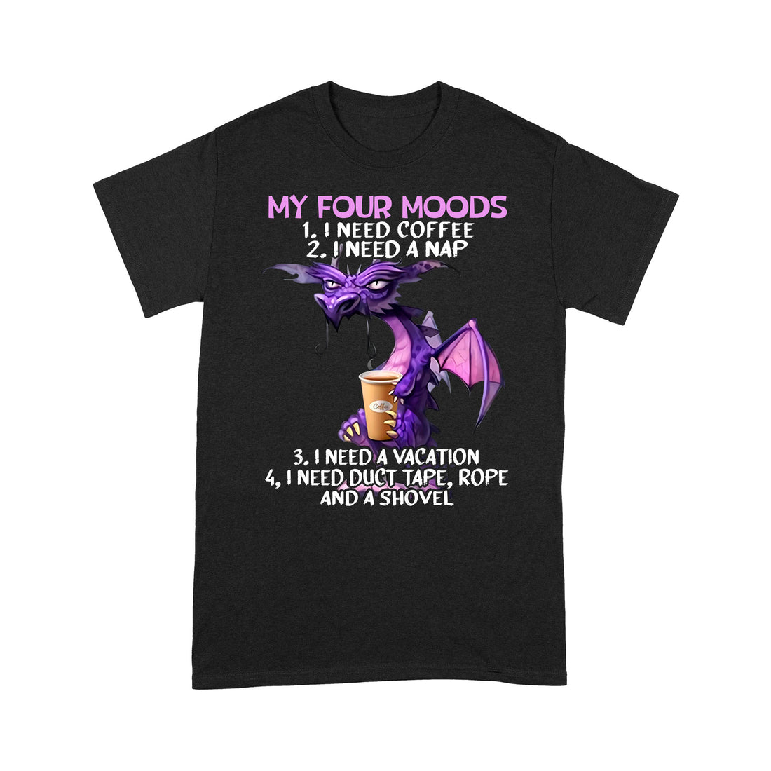 Dragon My Four Moods I Need Coffee I Need A Nap I Need A Vacation I Need Duct Tape Rope And A Shovel Shirt - Standard T-shirt