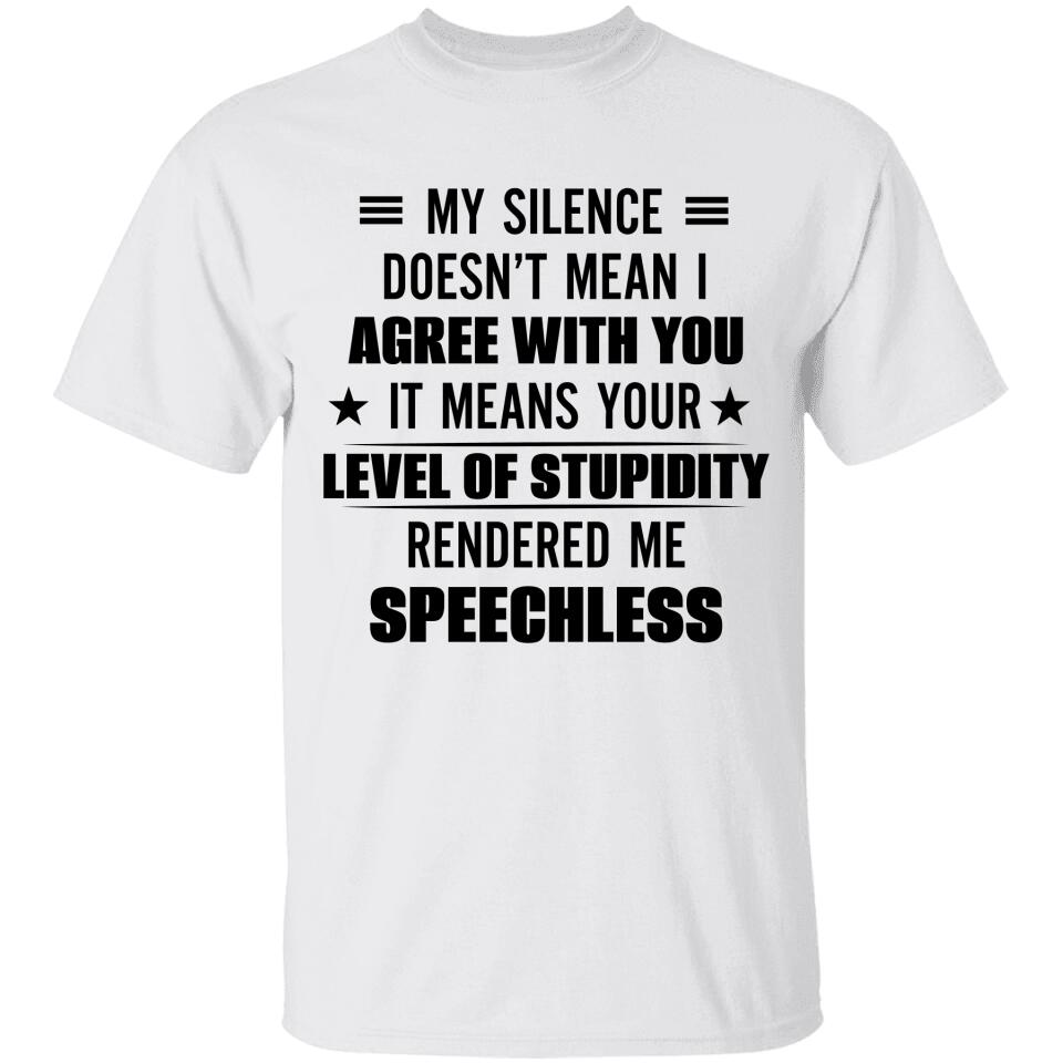 My Silence Doesn’t Mean I Agree With You It Means Your Level Of Stupidity Rendered Me Speechless Funny Gift T-shirt