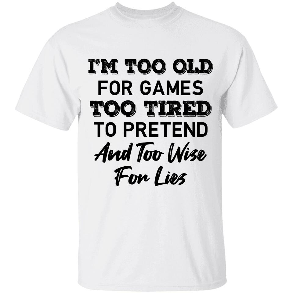 I'm Too Old For Games Too Tired To Pretend And Too Wise For Lies Shirt