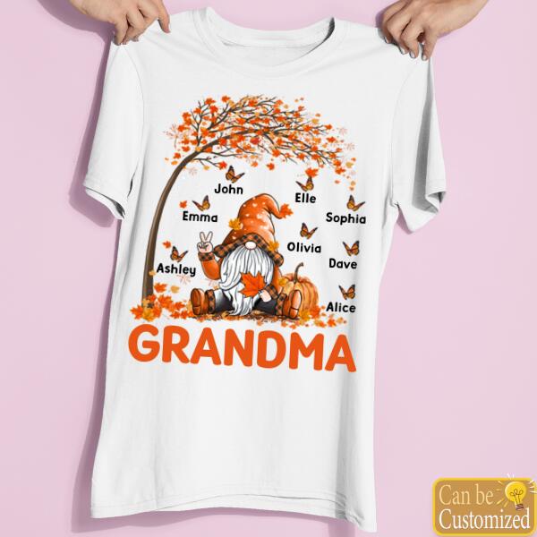 Gnome Grandma Fall Season Personalized Autumn Shirt Halloween Grandma Gifts