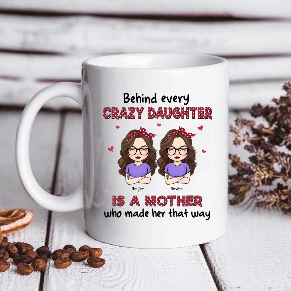 Behind Every Crazy Daughter, Personalized Mugs, Mother's Day Gifts Coffee Mugs