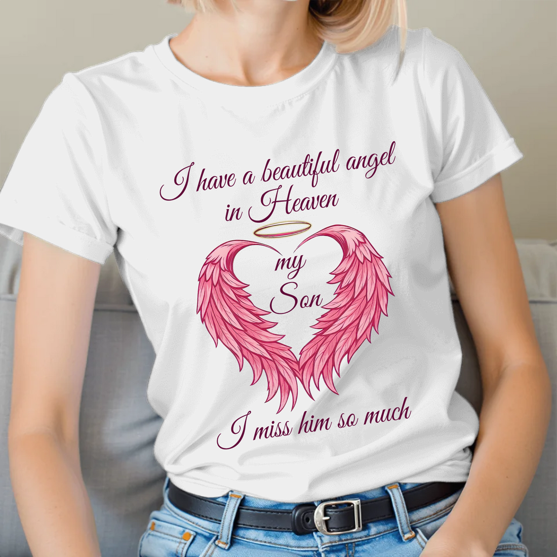 Beautiful Angel in Heaven Shirt - In Loving Memory of My Son - Memorial Shirts Sayings