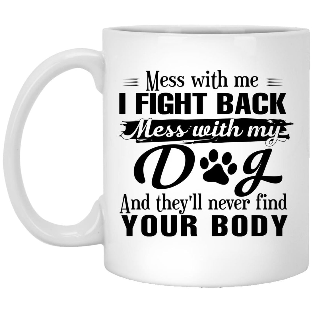 Home All Product Mess With Me I Fight Back Mess With My Dog And They’ll Never Find Your Body Mug
