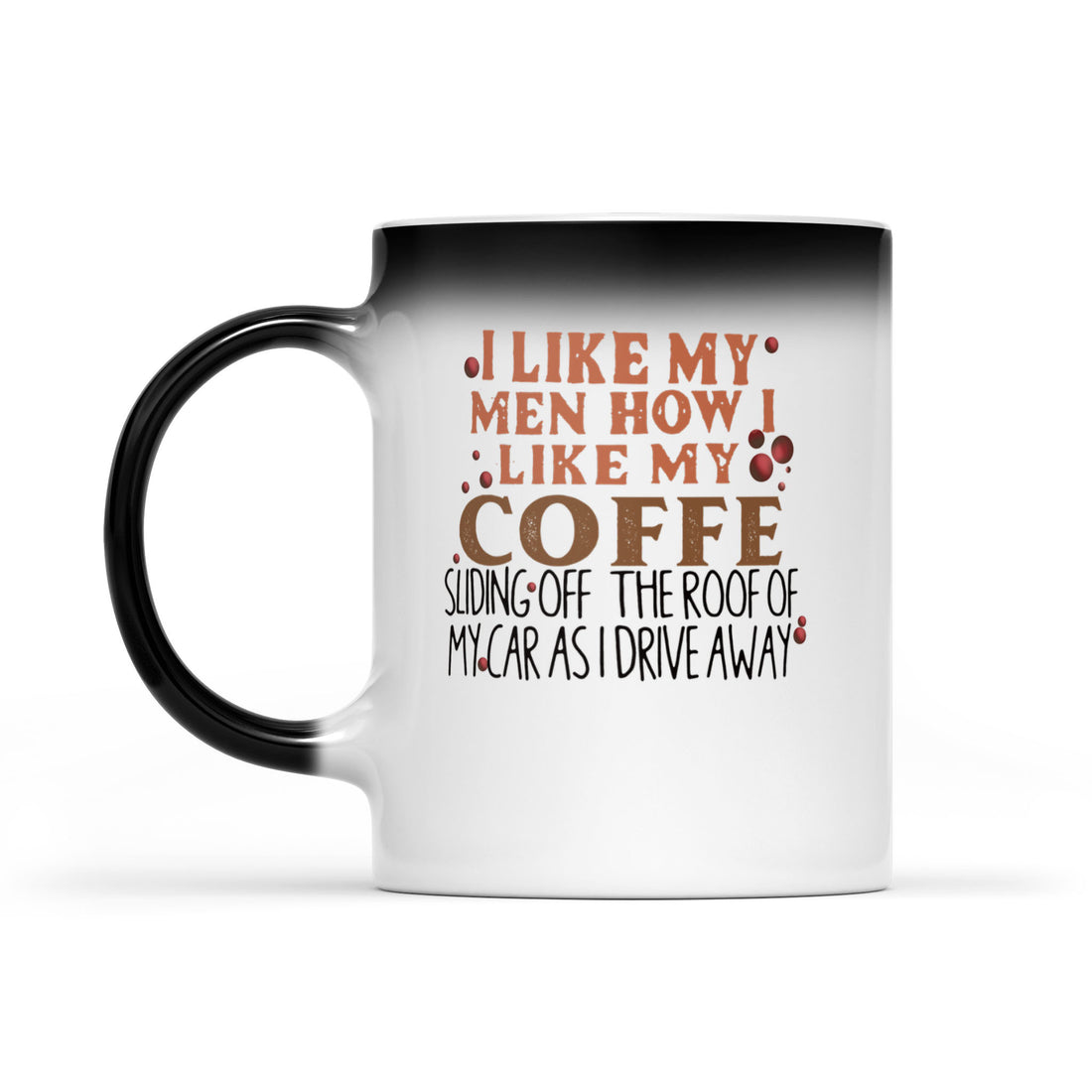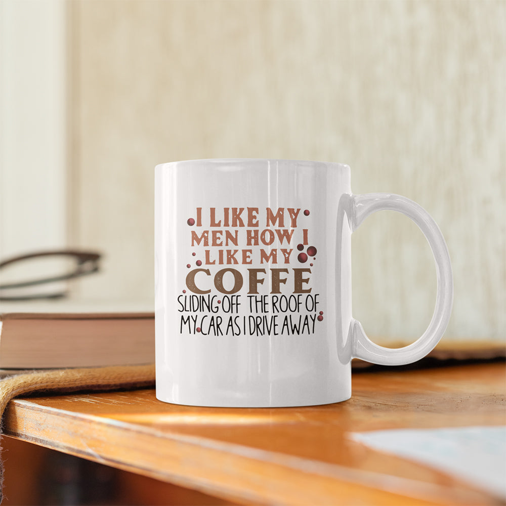 I Like My Men How I Like My Coffee Sliding Off The Roof Of My Car As I Drive Away Mug
