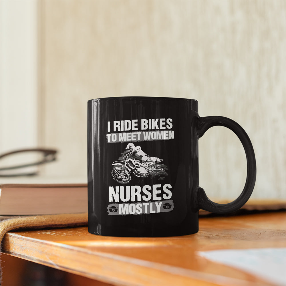 I Ride Bikes To Meet Women Nurses Mostly Shirt Biker Mug