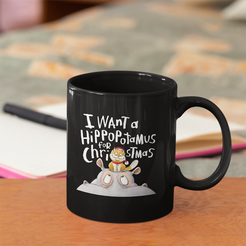 I Want A Hippopotenuse For Christmas Shirt Funny Hippopotamus and Cat Xmas Gift Mug