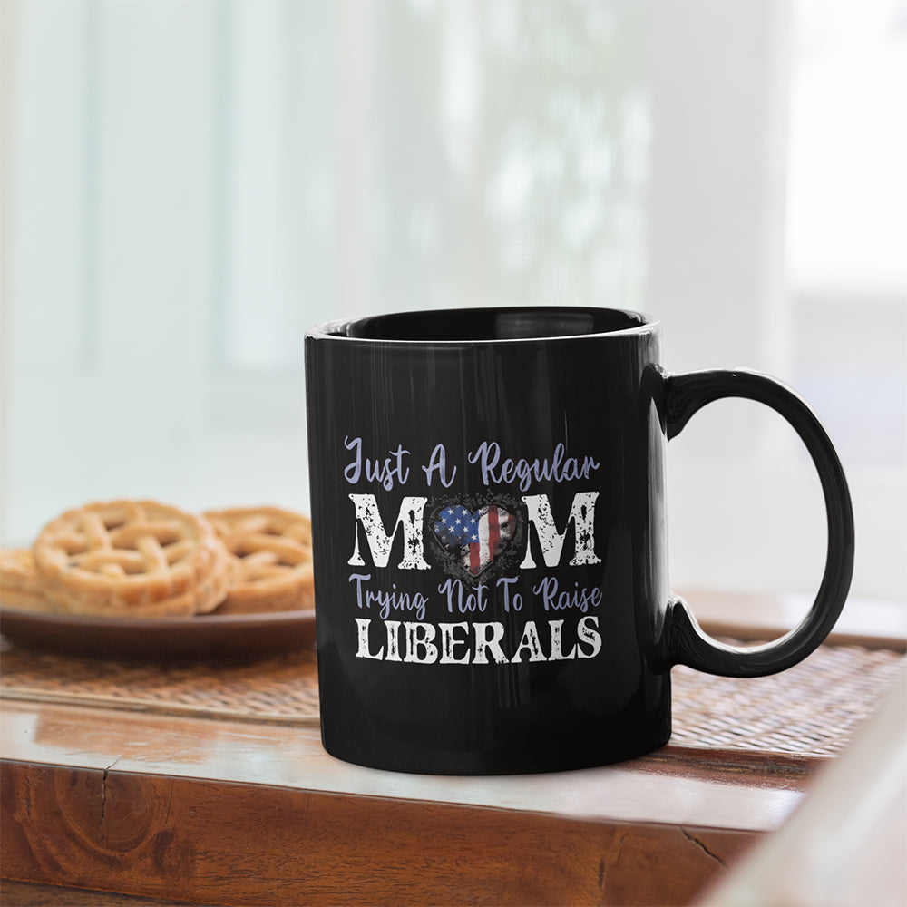 Just a Regular Mom Trying Not To Raise Liberals American Flag Mug
