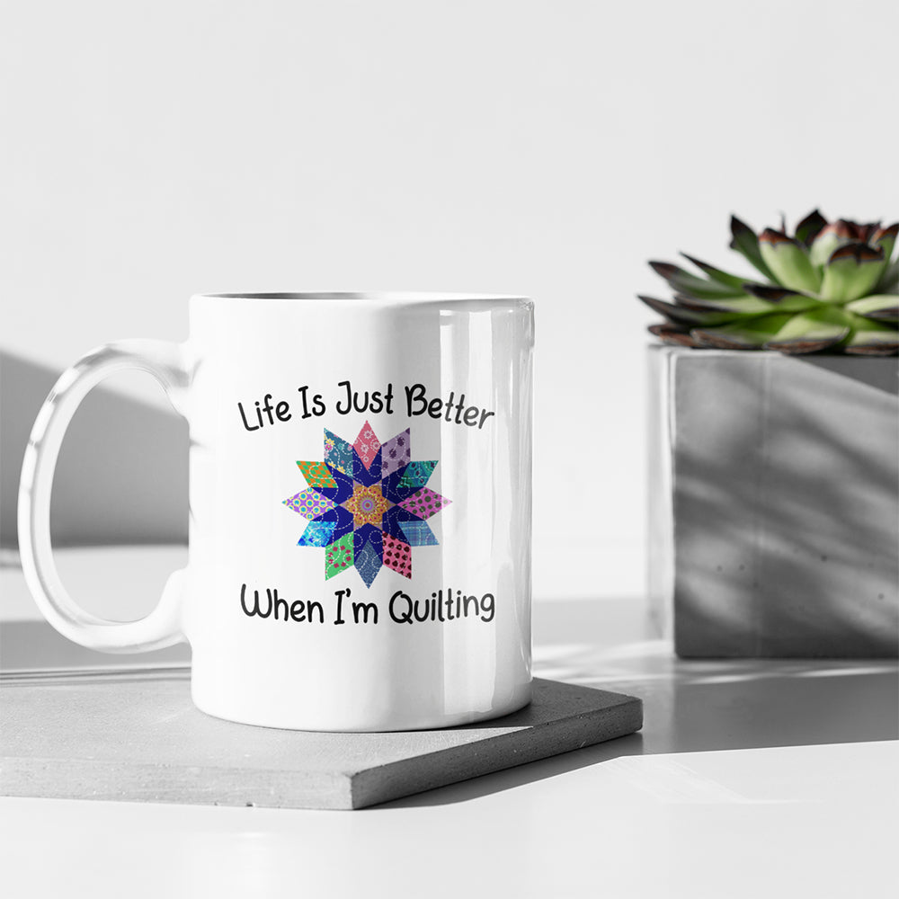 Life Is Just Better When I'm Quilting Sewing Fabric Funny Mug