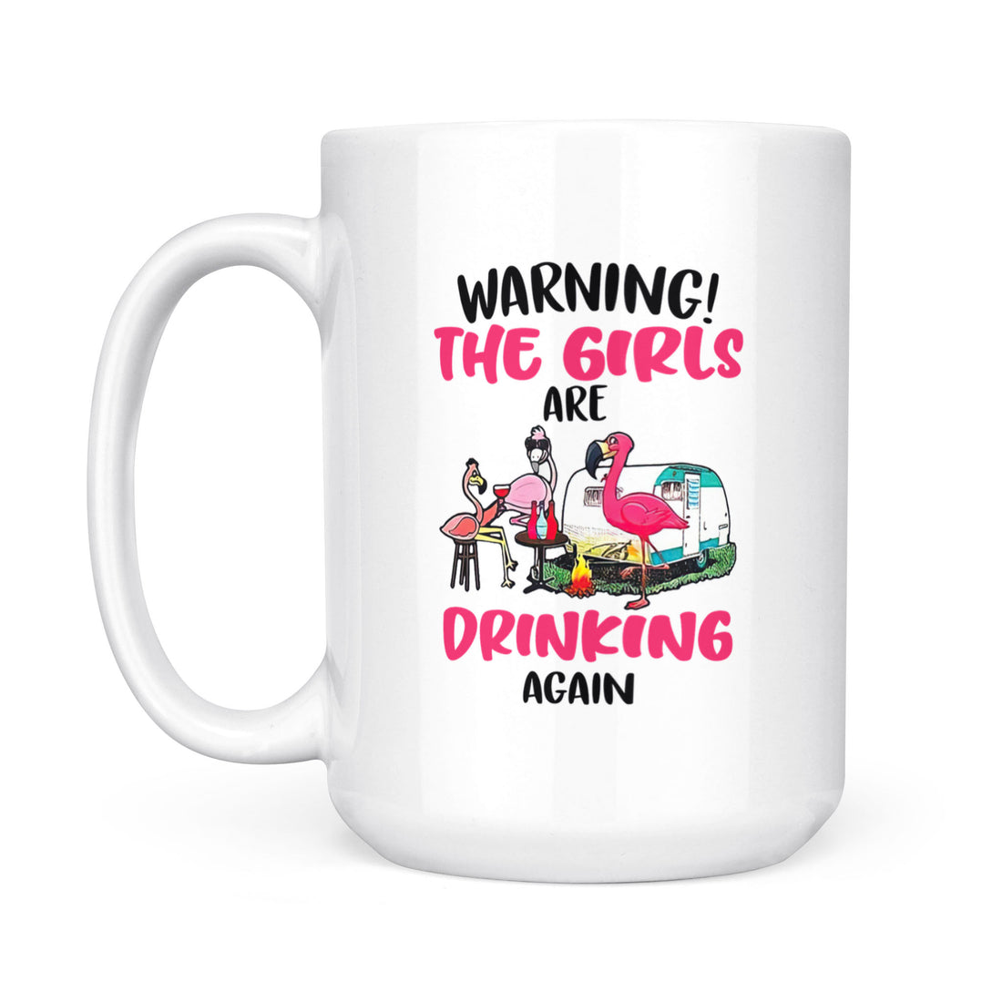 Flamingos Warning The Girls Are Drinking Again Funny Mug - White Mug