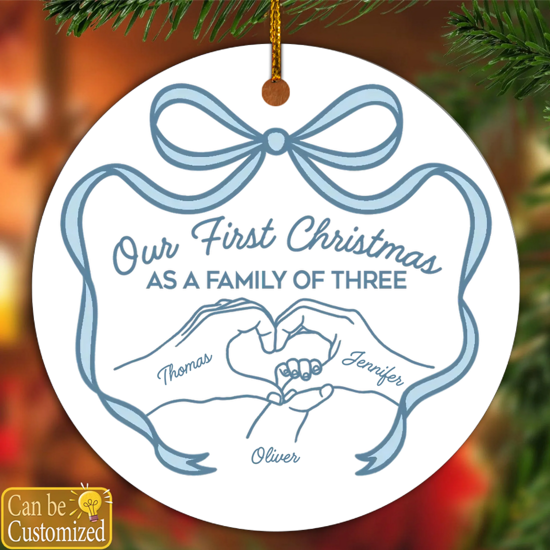 Our First Christmas as a Family of Three Ceramic Ornament 2025 - Family Keepsake