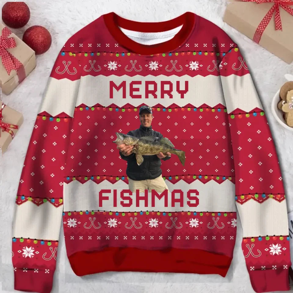 Custom Photo Merry Fishmas, Personalized Christmas Ugly Sweater - Gift For Fishing Lovers