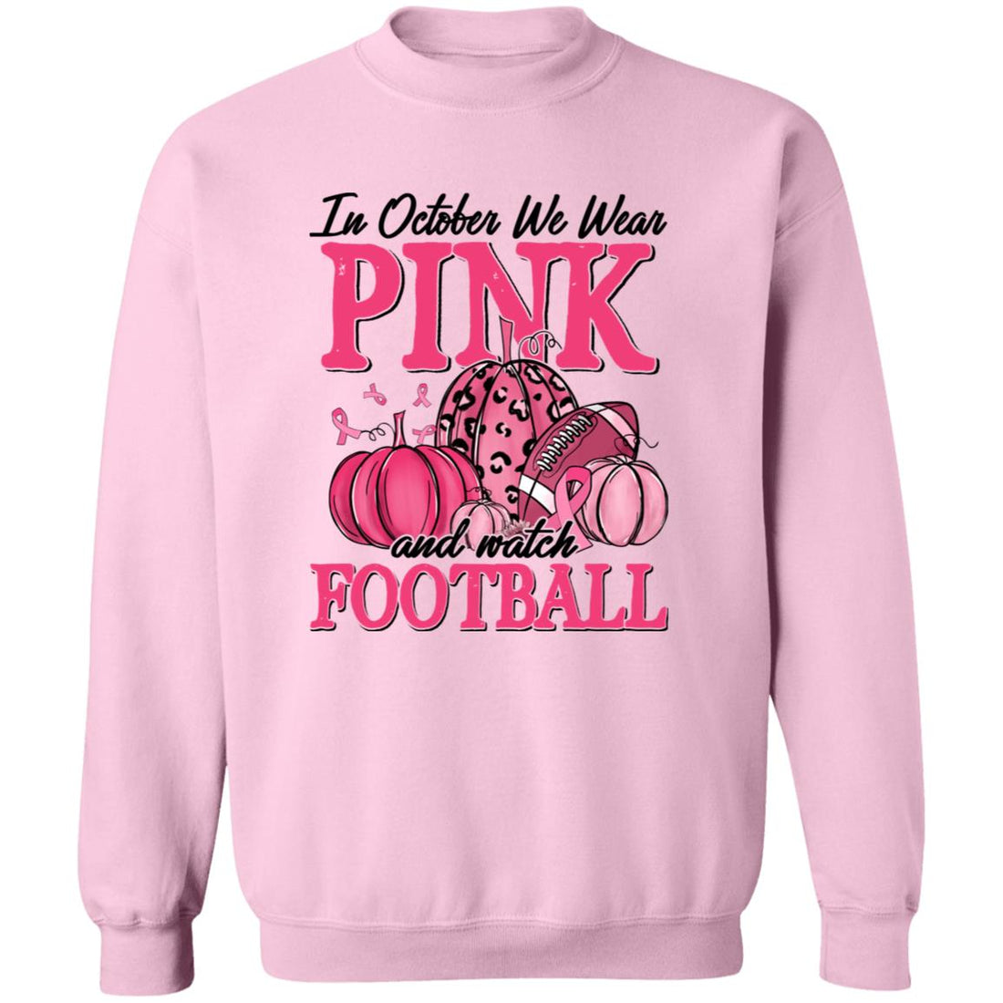 In October We Wear Pink Football Pumpkin Breast Cancer T-Shirt Unisex Crewneck Pullover Sweatshirt