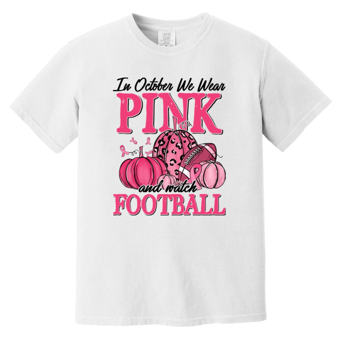 In October We Wear Pink Football Pumpkin Breast Cancer T-Shirt Comfort Colors Heavyweight T-Shirt