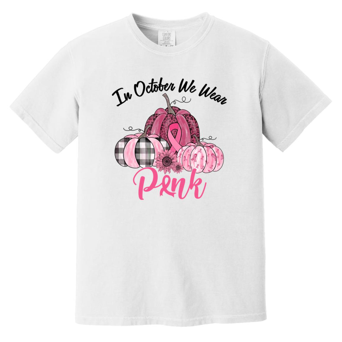 In October We Wear Pink Pumpkin Breast Cancer Awareness T-Shirt Comfort Colors Heavyweight T-Shirt