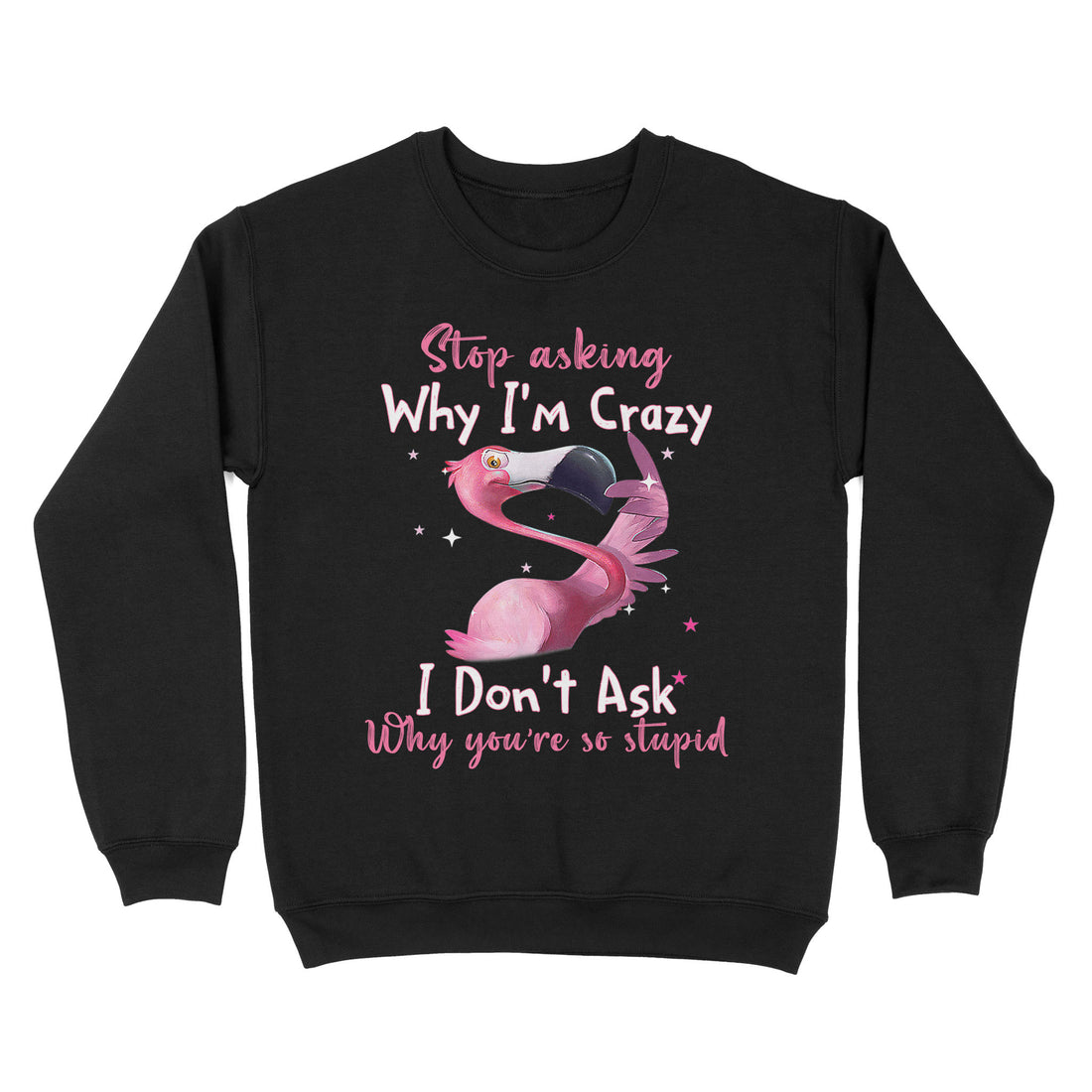 Funny Flamingo Stop Asking Why I'm Crazy Shirt - Standard Crew Neck Sweatshirt