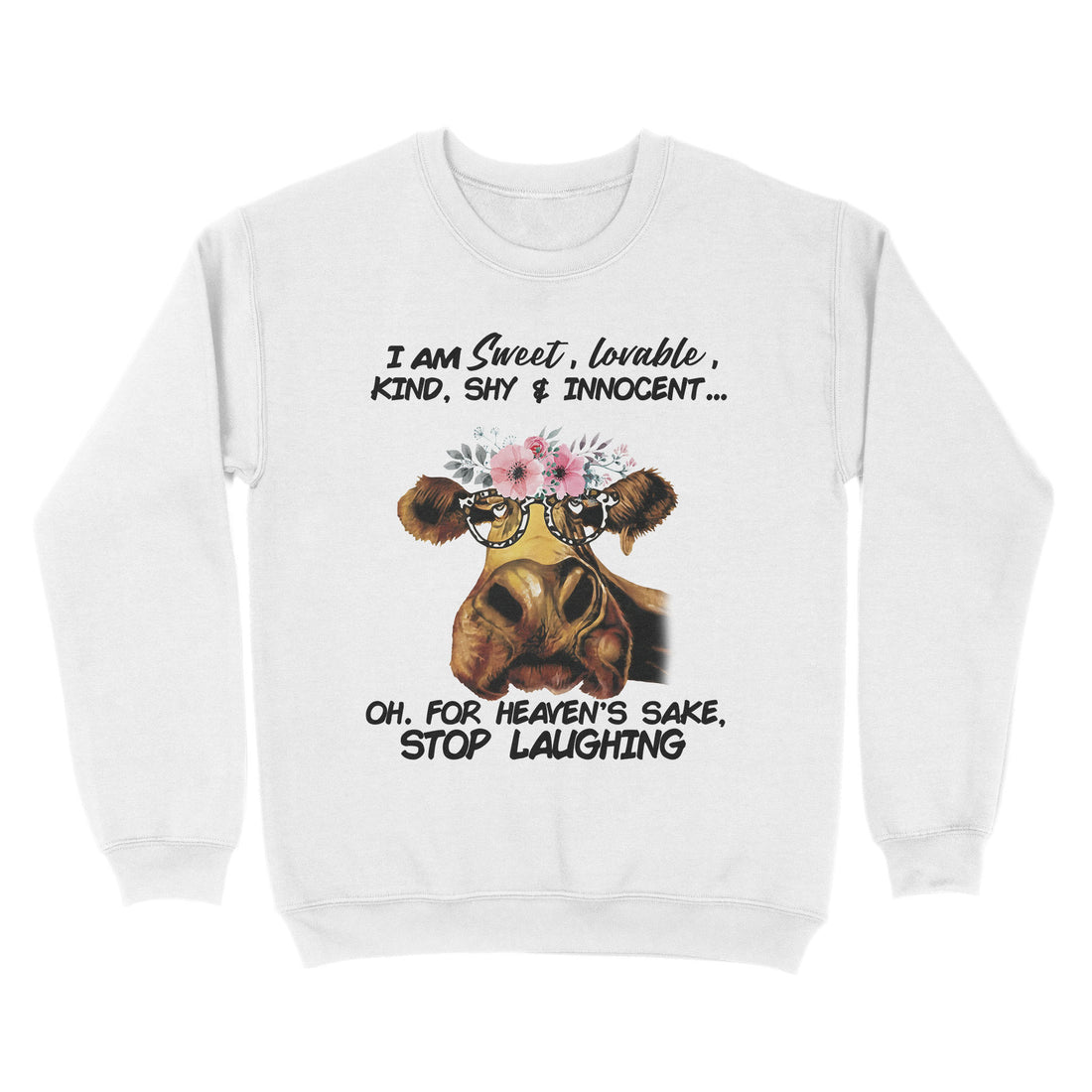 Cow I Am Sweet Lovable Kind Shy And Innocent Oh For Heaven's Sake Stop Laughing Shirt Funny Cow Lovers
