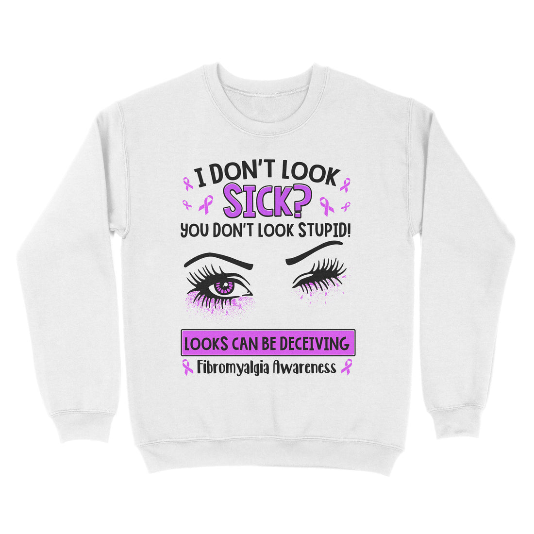 Eyes I Don't Look Sick You Don't Look Stupid Looks Can Be Deceiving Fibromyalgia Awareness Shirt - Standard Crew Neck Sweatshirt