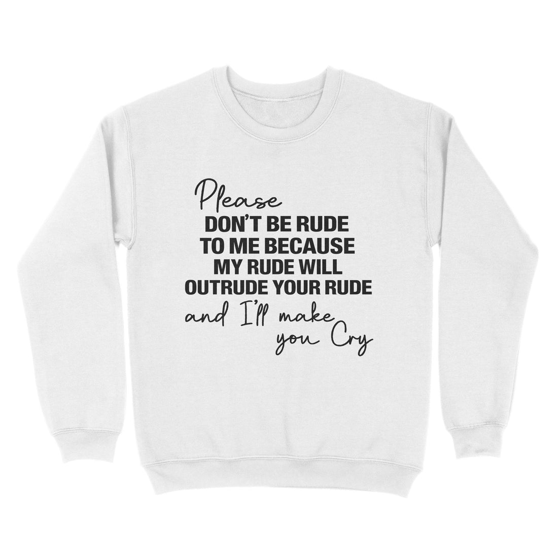 Please Don't Be Rude To Me Because My Rude Will Outrude Your Rude And I'll Make You Cry Shirt Funny Quote T-Shirt - Standard Crew Neck Sweatshirt
