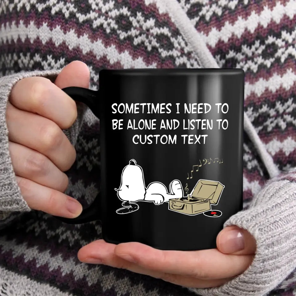 Personalized Snoopy Sometimes I Need To Be Alone And Listen To Custom Text Mug, Coffee Mugs