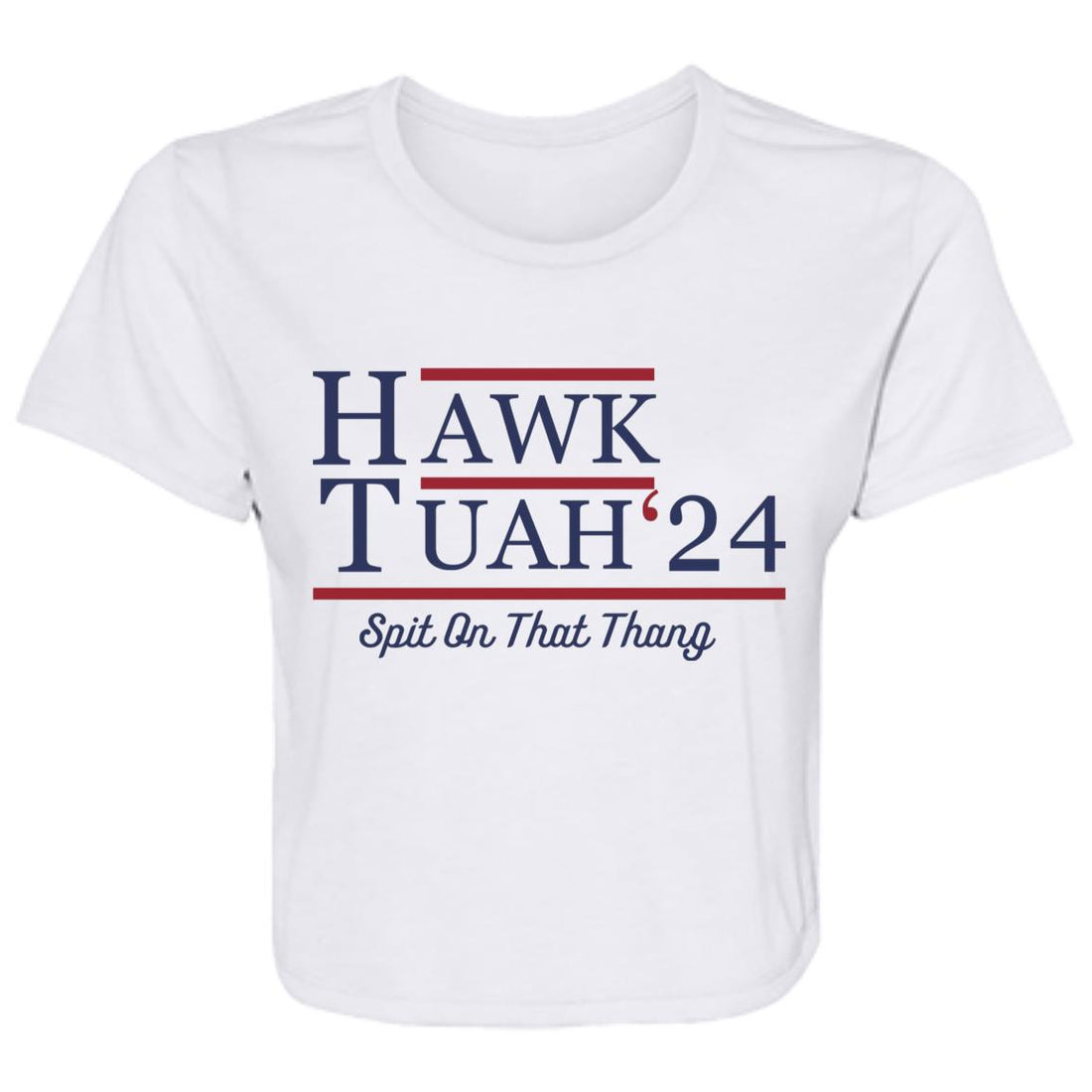 Hawk Tuah 24 Spit On That Thang Ladies' Flowy Cropped Tee