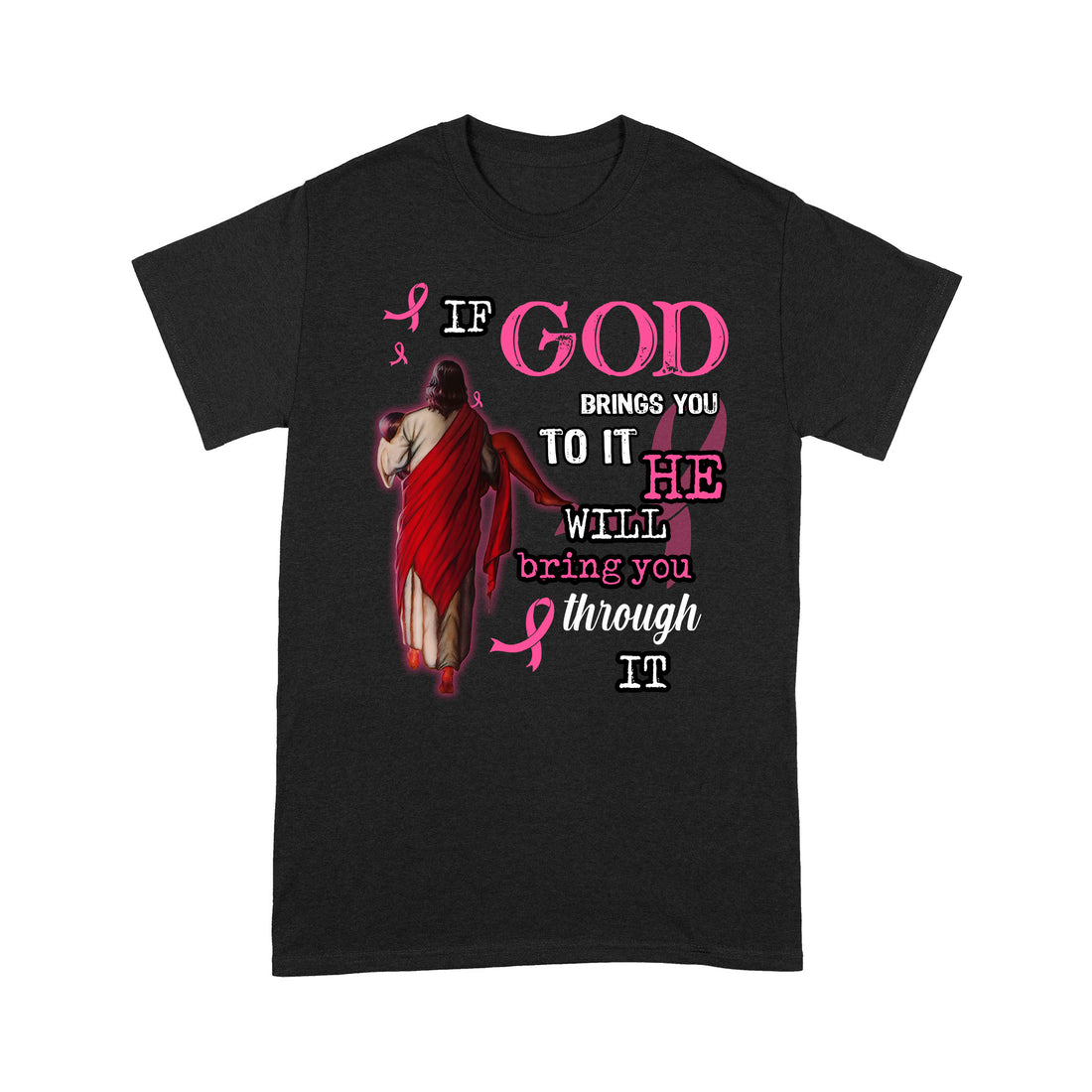 Breast Cancer If God Brings You To It He Will Bring You Through Graphic Tee Shirt - Standard T-Shirt