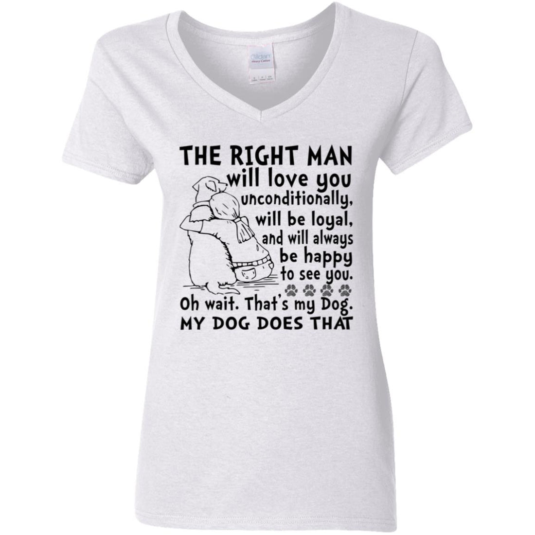 My Dog Is The Right Man Will Love You Unconditionally Will Be Loyal Shirt Women's V-Neck T-Shirt