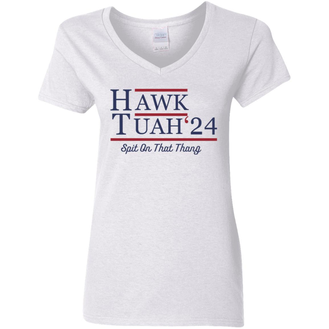 Hawk Tuah 24 Spit On That Thang Women's V-Neck T-Shirt