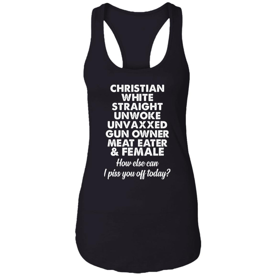 Christian White Straight Unwoke Unvaxxed Gun Owner Meat Eater Female How Else Can I Piss You Off Today Shirt Ladies Ideal Racerback Tank