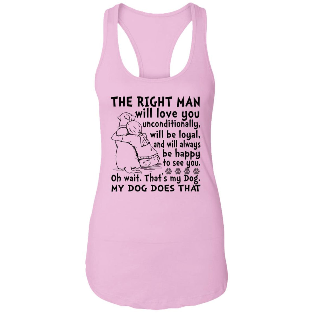 My Dog Is The Right Man Will Love You Unconditionally Will Be Loyal Shirt Ladies Ideal Racerback Tank