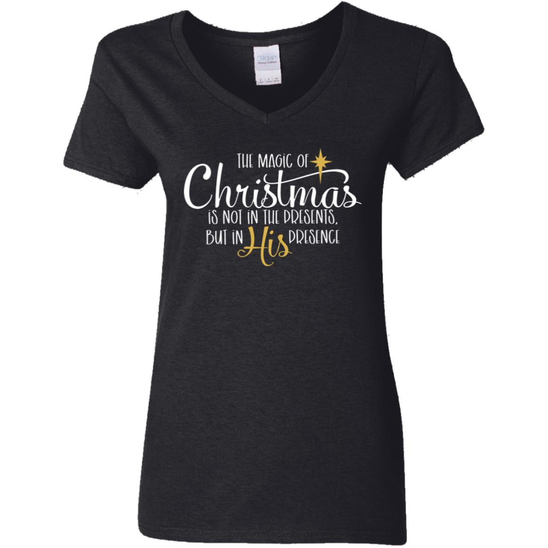 Magic of Christmas Not in Presents but in HIS Presence Shirt Women's V-Neck T-Shirt