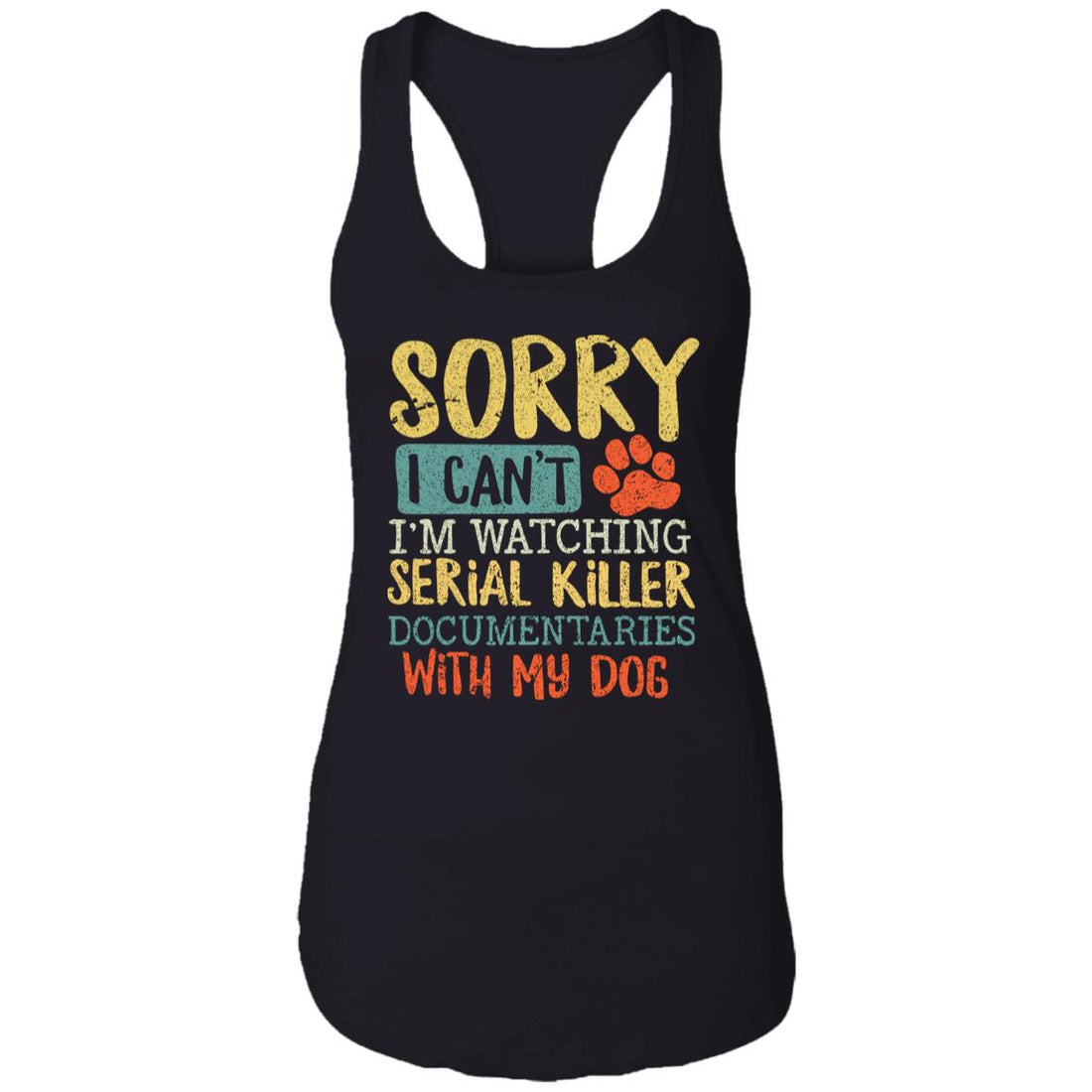 Sorry I Can't I'm Watching Serial Killer Documentaries With My Dog Shirt Ladies Ideal Racerback Tank